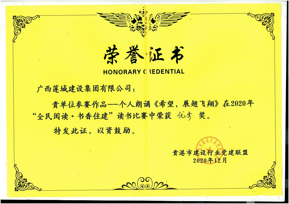 個(gè)人朗誦《希望,展翅飛翔》榮獲優(yōu)秀獎(jiǎng)