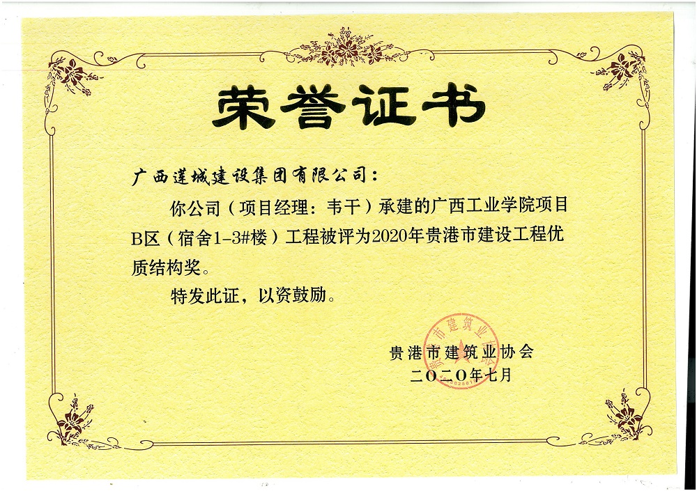 2020年貴港市建設(shè)工程優(yōu)質(zhì)結(jié)構(gòu)獎(jiǎng)廣西工業(yè)學(xué)院項(xiàng)目B區(qū)(宿舍1-3#)工程