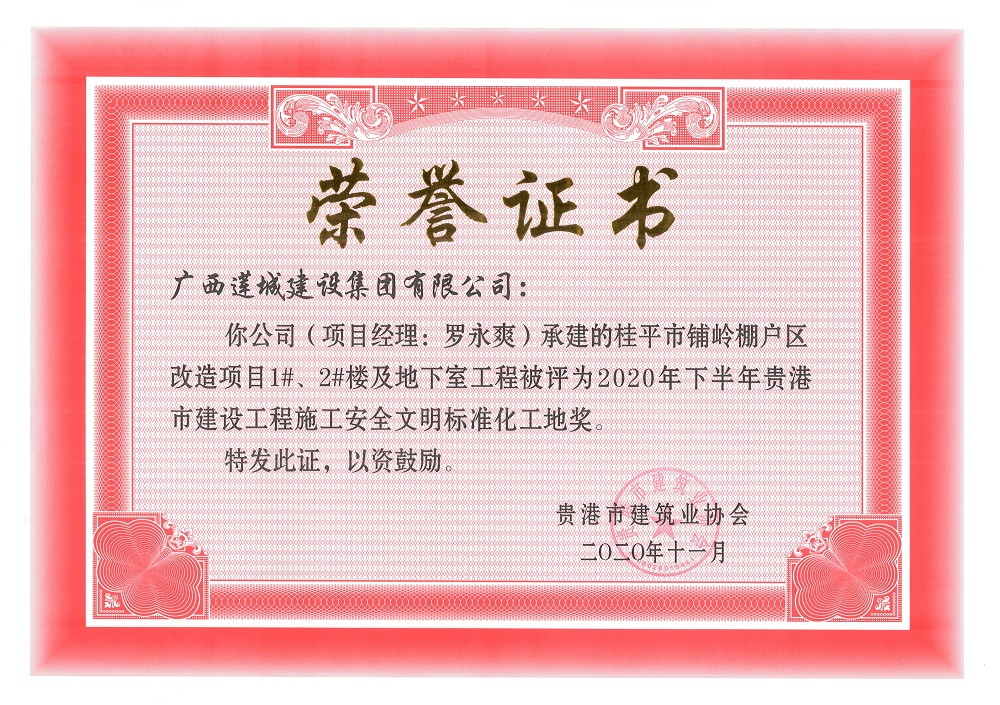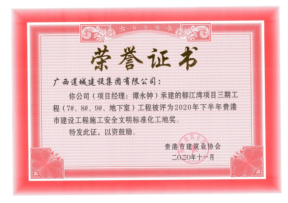 2020年貴港市建設(shè)工程“荷城杯”獎(jiǎng)(最高質(zhì)量獎(jiǎng))郁江灣項(xiàng)目1-3#樓、5-6樓及一期地下室工程,項(xiàng)目經(jīng)理:梁錦助.jpg