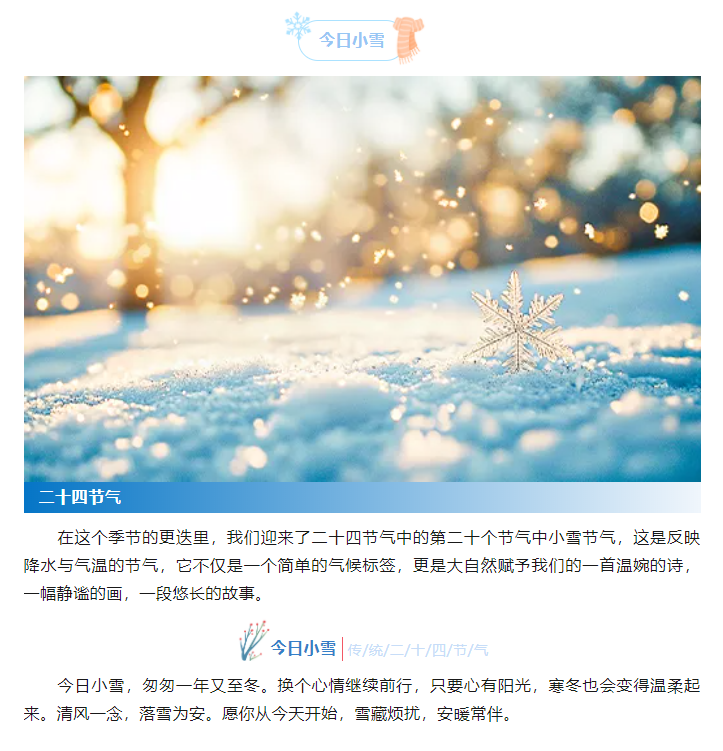 在這個(gè)季節(jié)的更迭里,我們迎來(lái)了二十四節(jié)氣中的第二十個(gè)節(jié)氣中小雪節(jié)氣...