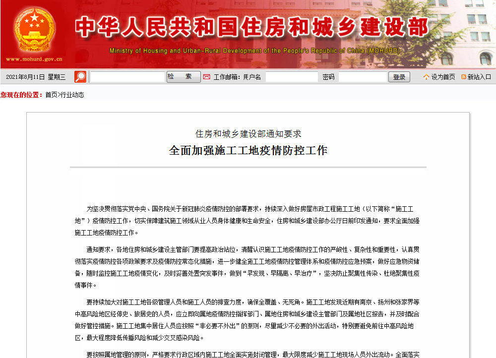 為堅決貫徹落實黨中央、國務院關于新冠肺炎疫情防控的部署要求,持續(xù)深入做好房屋市政工程施工工地(以下簡稱“施工工地”)疫情防控工作,切實保障建筑施工領域從業(yè)人員身體健康和生命安全,住房和城鄉(xiāng)建設部辦公廳日前印發(fā)通知,要求全面加強施工工地疫情防控工作。通知要求,各地住房和城鄉(xiāng)建設主管部門...