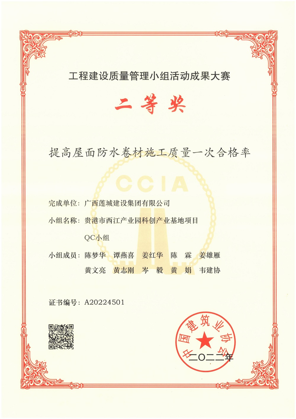 2022年工程建設(shè)質(zhì)量管理小組活動(dòng)成果大賽QC小組