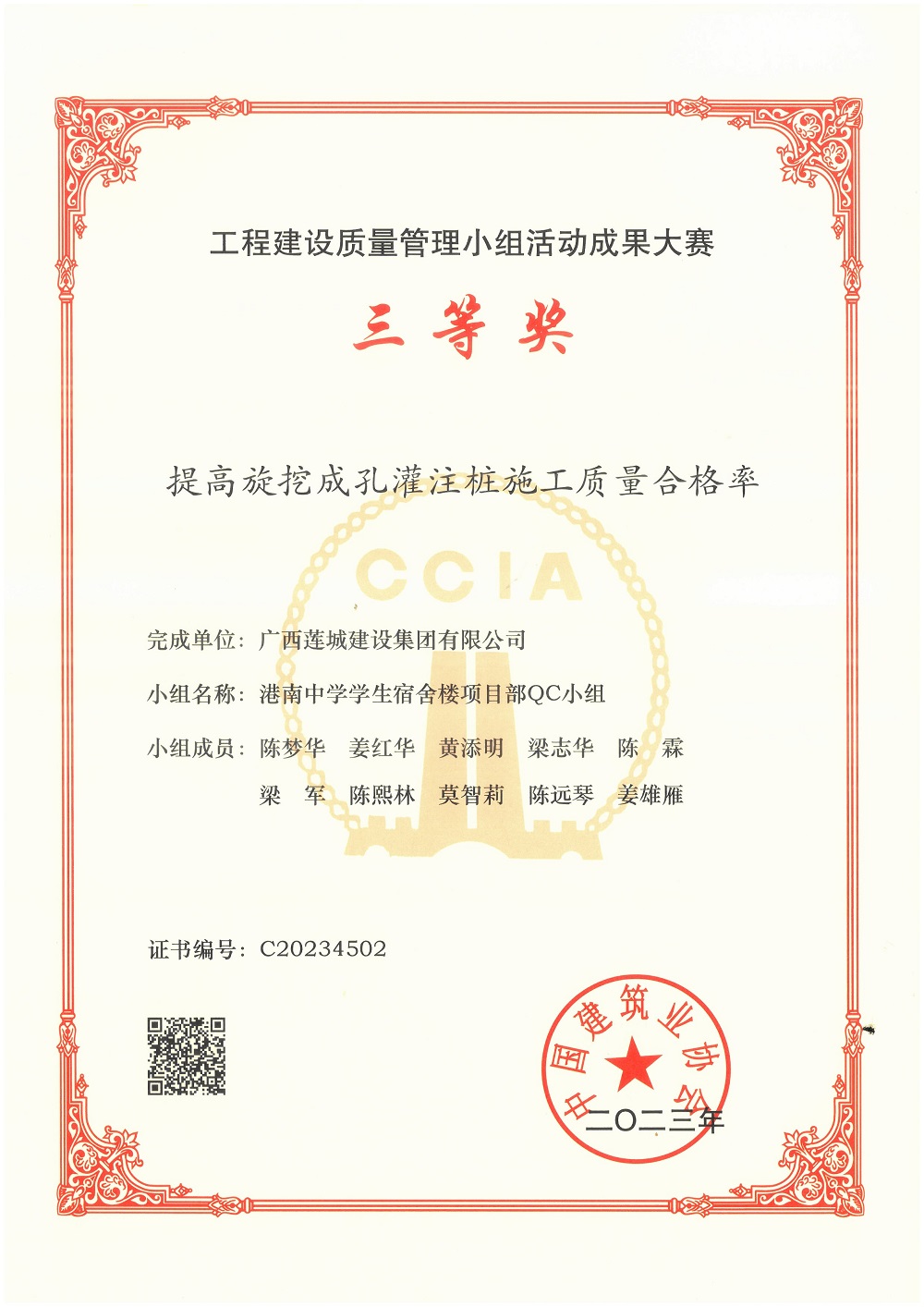 2023年工程建設(shè)質(zhì)量管理小組活動(dòng)成果大賽QC小組